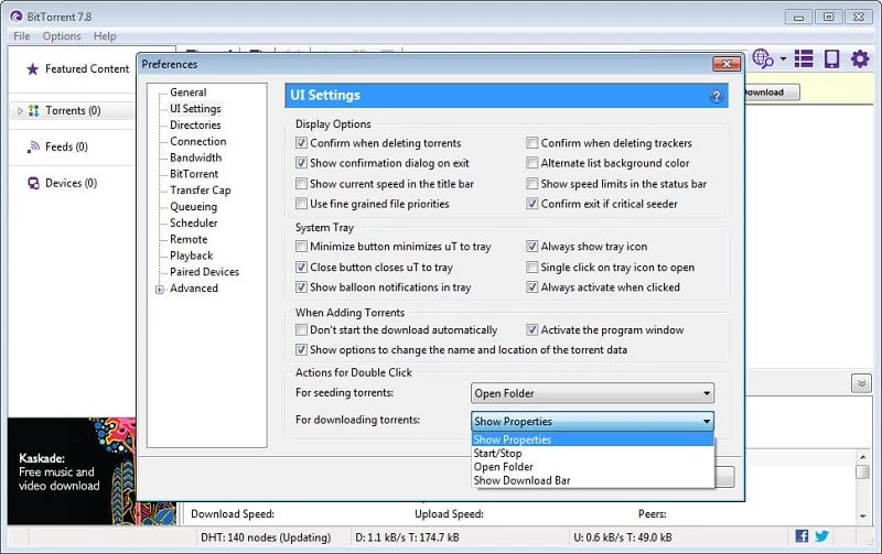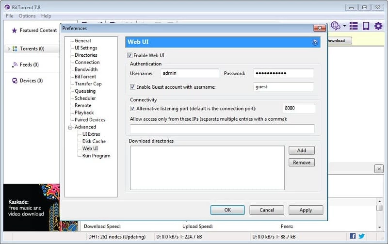 C'est la meilleure option pour les utilisateurs qui souhaitent obtenir un maximum de données avec une connexion internet limitée. Vous pouvez donc accéder aux paramètres de bande passante et configurer le client pour qu'il utilise une connexion internet limitée. De plus, la prise en charge des liens magnétiques pour les deux clients, permettant de localiser les pairs via DHT, simplifie le partage et permet également aux deux clients de lancer des téléchargements directement, sans avoir à séparer les fichiers .torrent.